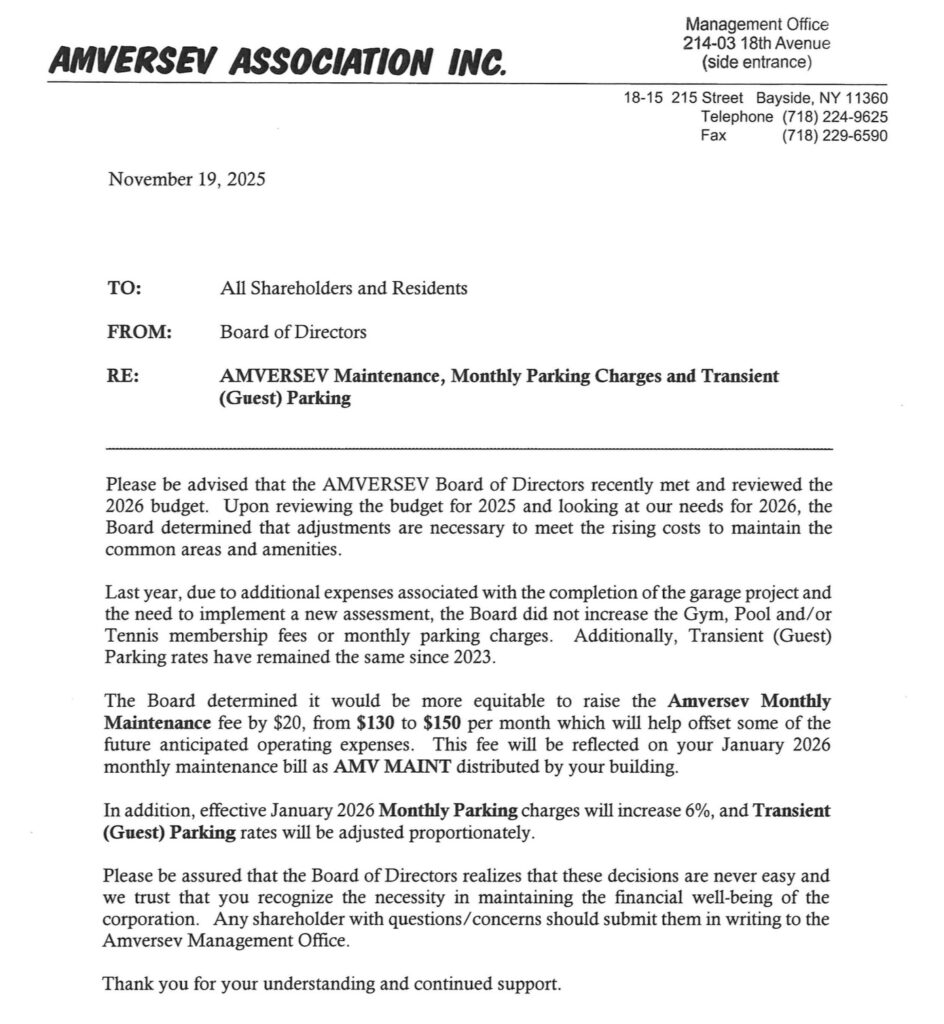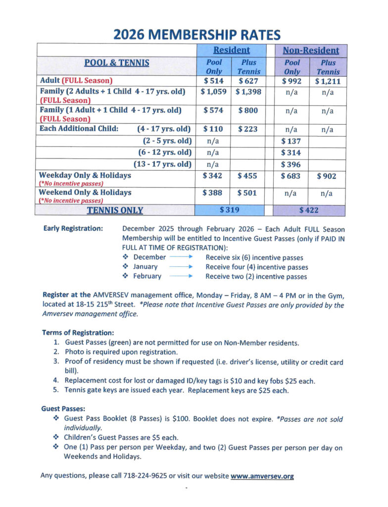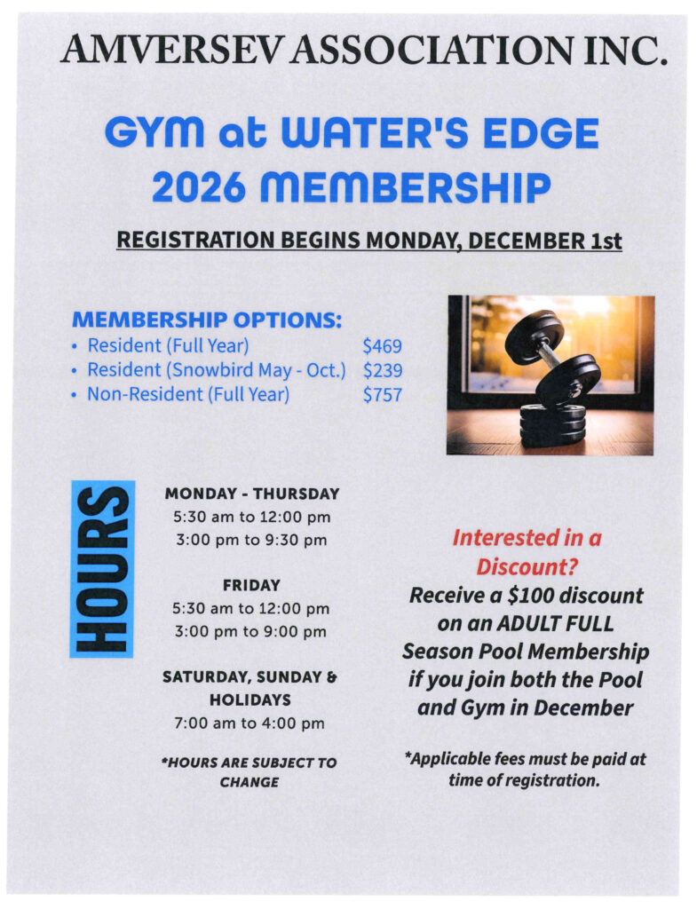 AMVERSEV Concession is a privately owned company that serves only the residents of the Towers at Water’s Edge, maintaining the common grounds, garage, security, pool, tennis club, and gym.